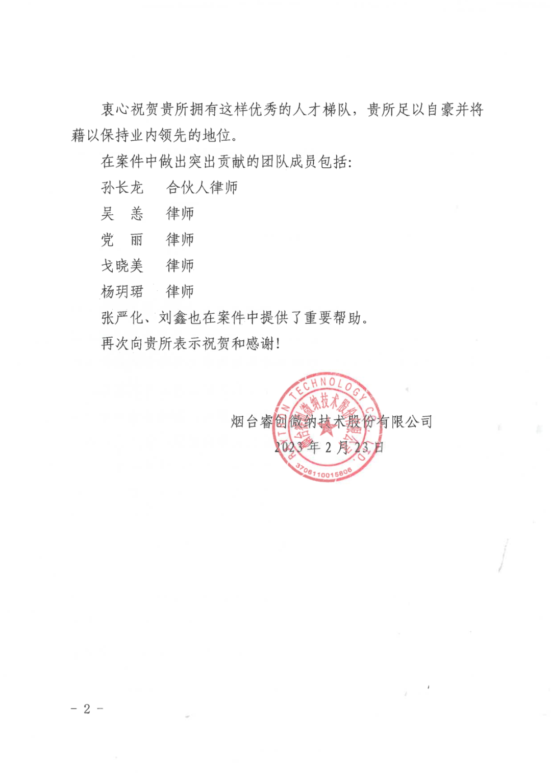 最后,感谢睿创集团知识产权团队对于本案的积极贡献,以及对于奇异果体育的支持与信任,共同成就恶意诉讼案的最终胜利!